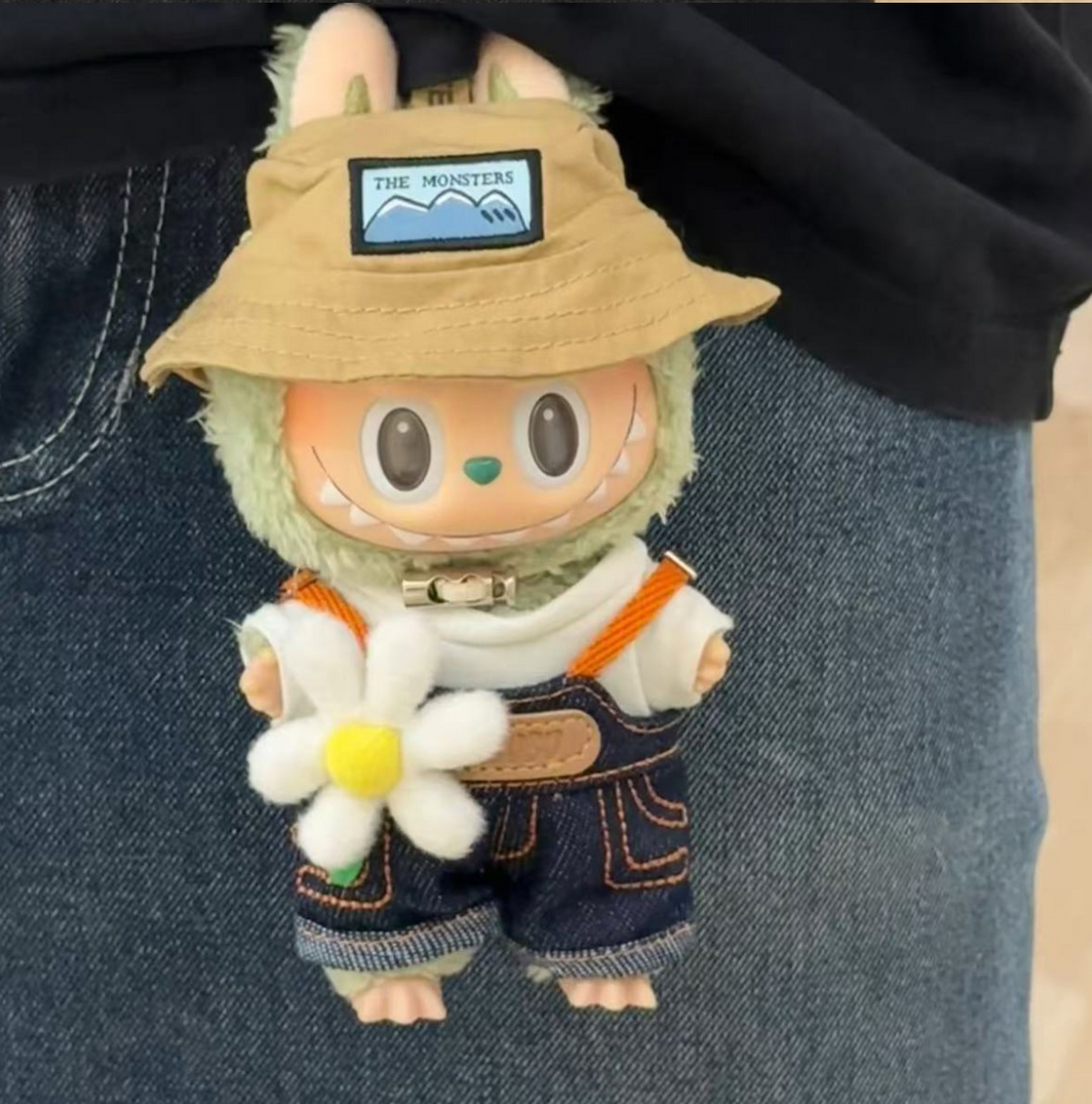 labubu doll clothes 17cm blind box pull cloth pendant change clothes overalls spring field suit