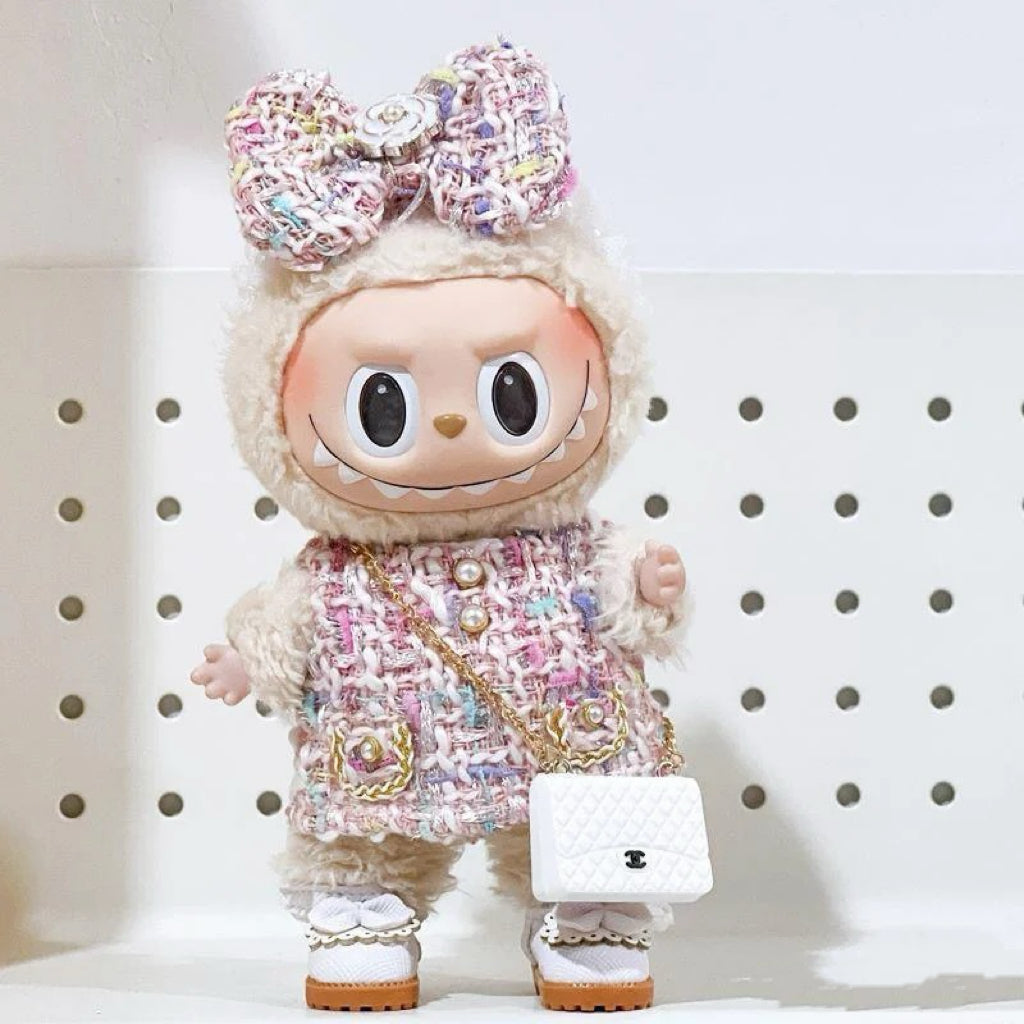One, two and three generations wear Labubu sitting party doll clothes 17cm doll Labubu clothes small Chanel style only clothes