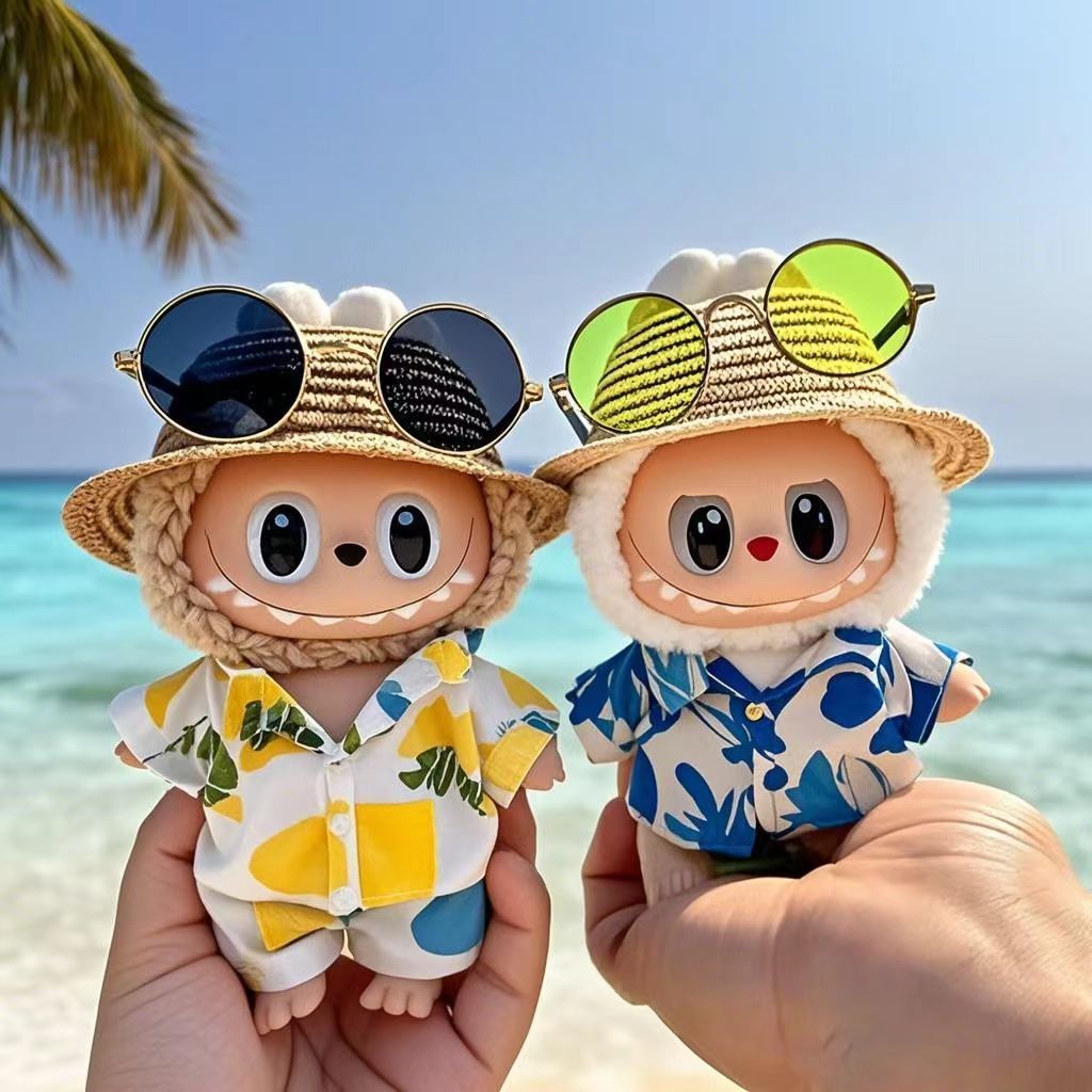First/Second Generation Labubu Clothes Sitting Party Baby Clothes Beach Glasses Set